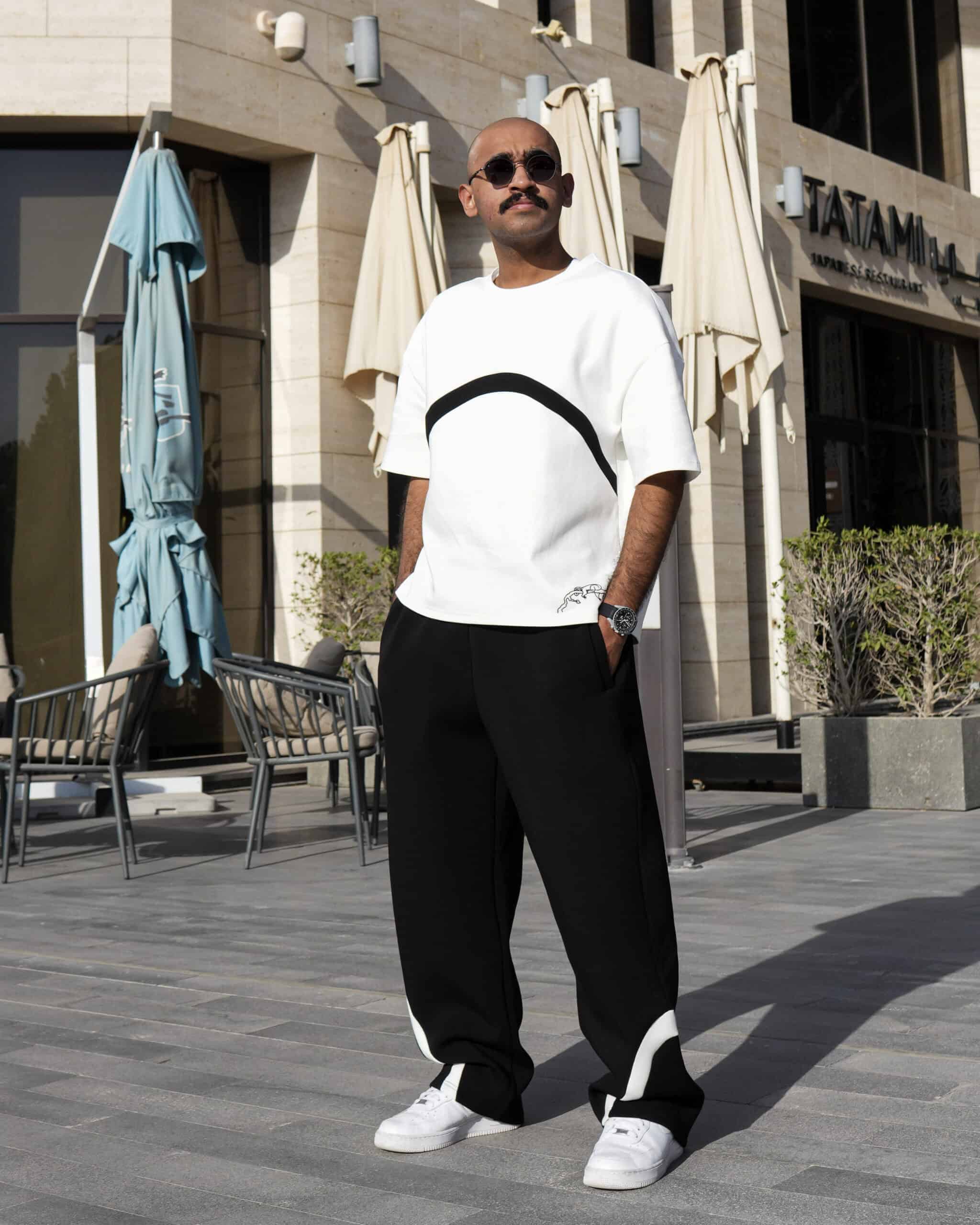 “crafted from a premium blend of cotton, polyester, and spandex, this tee features a modern boxy fit silhouette that redefines casual luxury with relaxed cut designed to elevate your everyday style.”